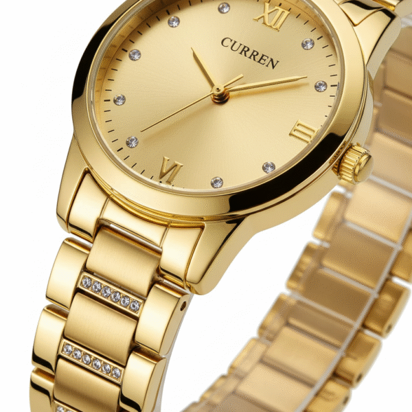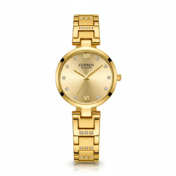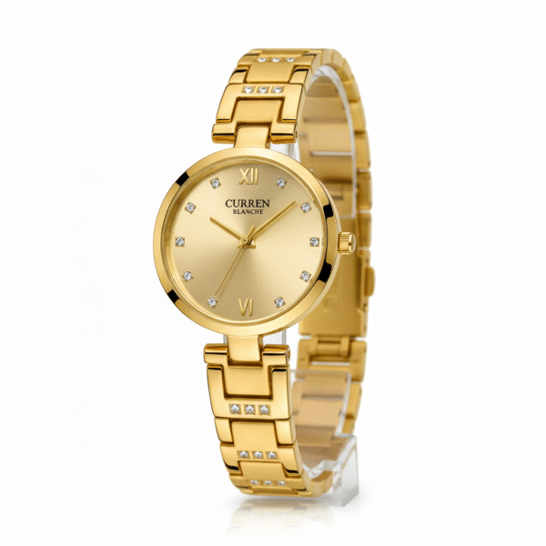 Relógio Feminino Curren Blanche Dourado com Cristais